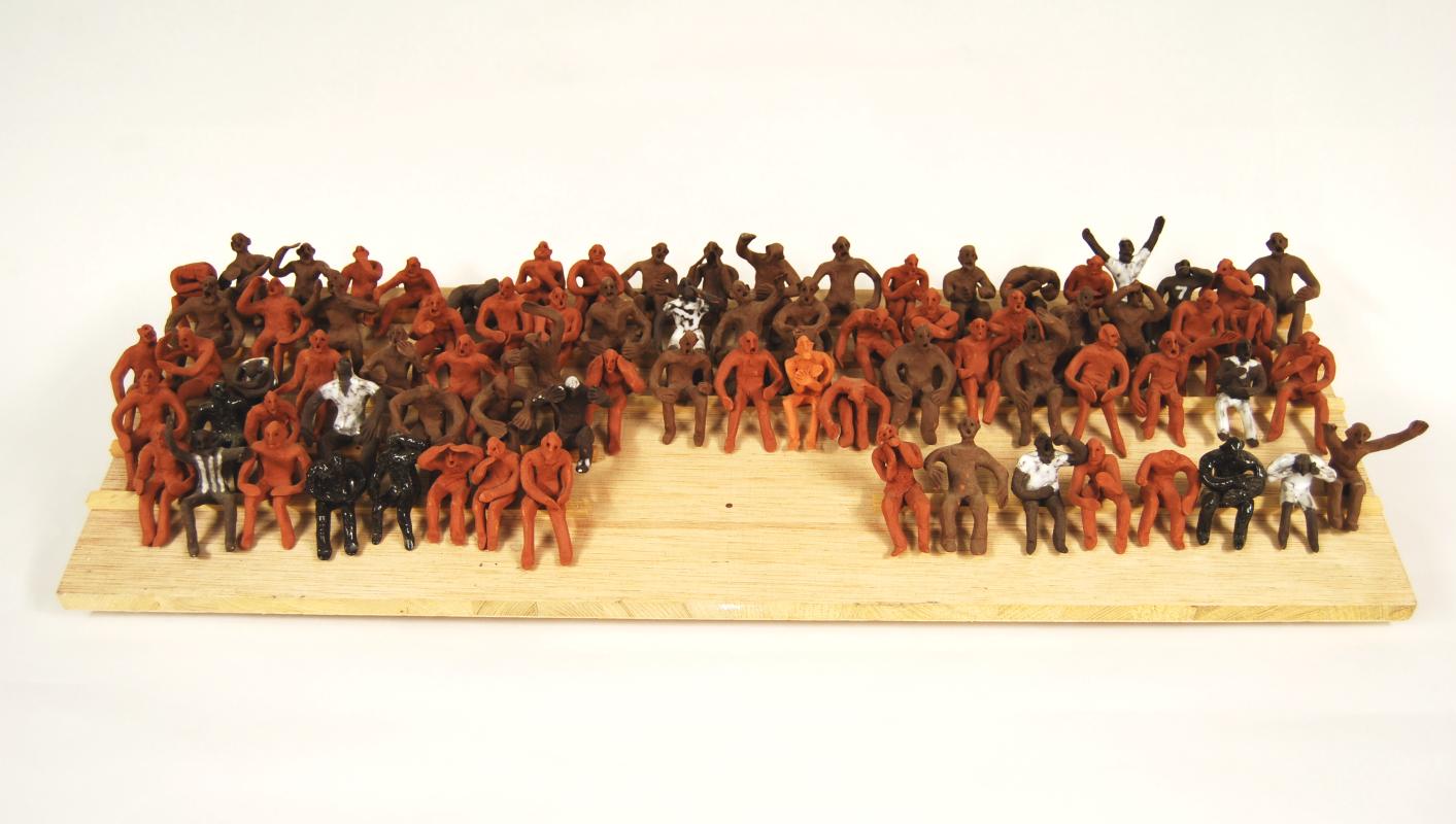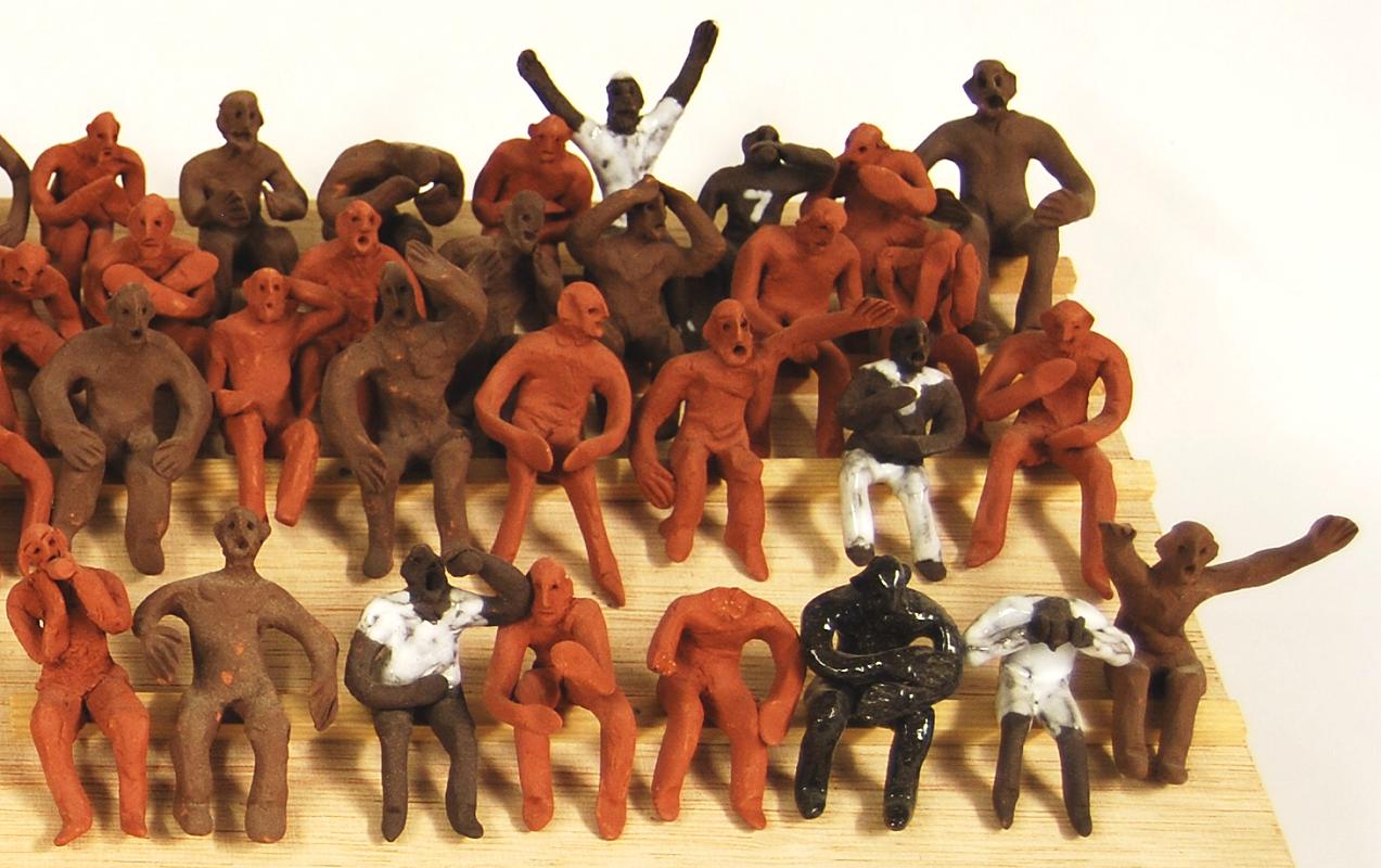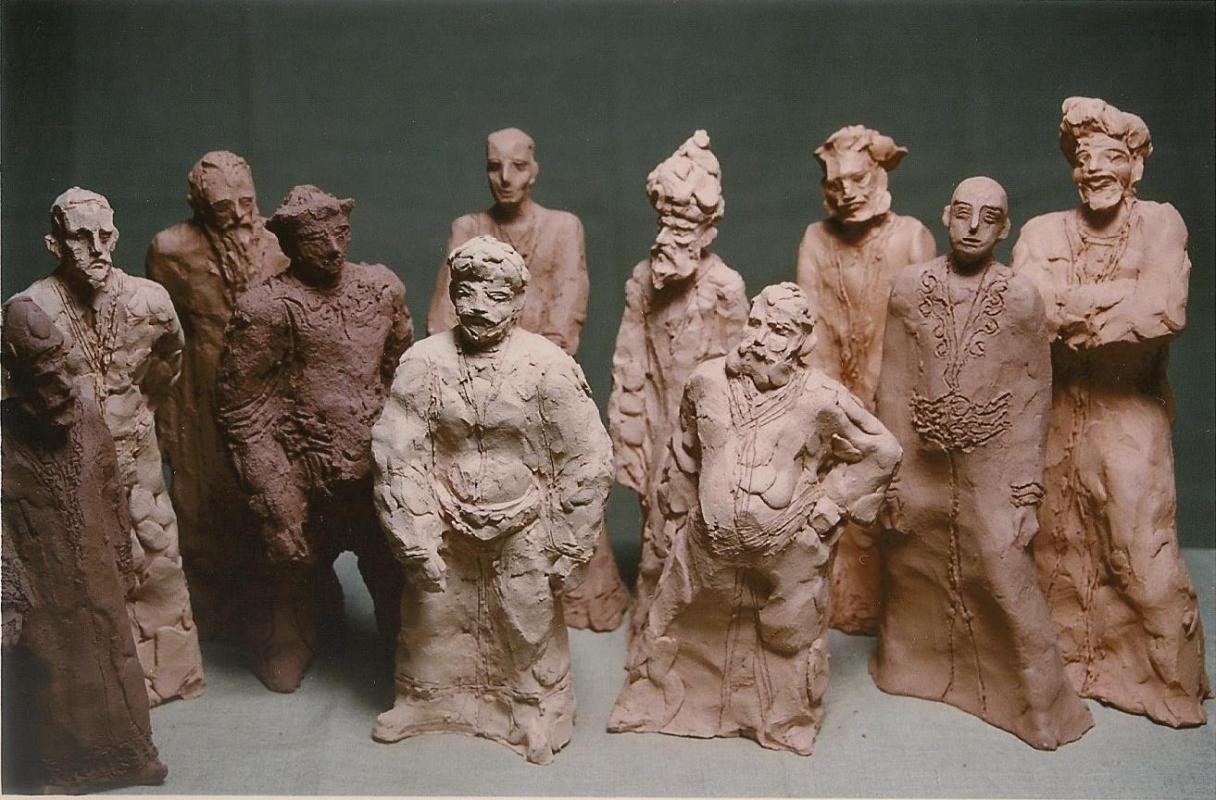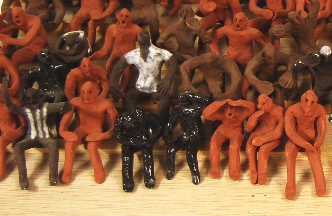 Meine Arbeiten sind einerseits der klassischen Bildhauerei, ihren handwerklichen Techniken und der figurativen Formgestaltung, verpflichtet. Andererseits interessiert mich die Gestaltung von Serien und Gruppen: Ich modelliere oder schnitze ein Grundmotiv mehrfach – meistens handelt es sich um Menschen oder Gesichter. Oder ich forme meine Figuren ab und vervielfache sie auf diese Weise. Die Skulpturen stelle ich zu Gruppen zusammen. In diesen Gruppen entstehen Beziehungen zwischen den einzelnen Figuren: Es kann nun um Gleich- oder Verschiedenartigkeit, um Einzigartigkeit oder Ähnlichkeit und das Verhältnis zwischen dem Einzelnen und der Masse gehen. Damit verfremde ich die tradierten Verfahren der klassischen Bildhauerei, die das Einzelwerk in den Mittelpunkt stellen. Die Skulpturengruppen können auch einen installativen Charakter gewinnen.